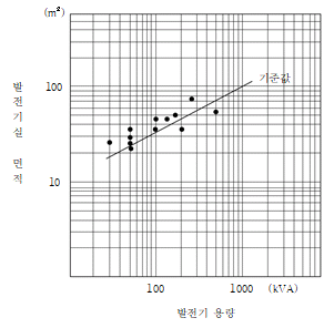 3.2.4 발전기 용량과 발전기실 면적과의 관계는 그림 3.2-2를 참조한다.